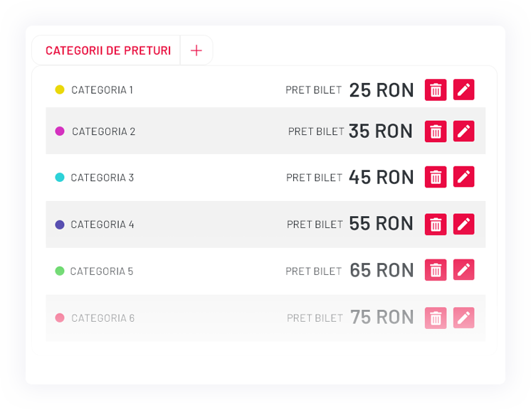 După ce ți-ai făcut o strategie de vânzare pentru locurile din săli, următorul pas este să creezi categoriile de preț.